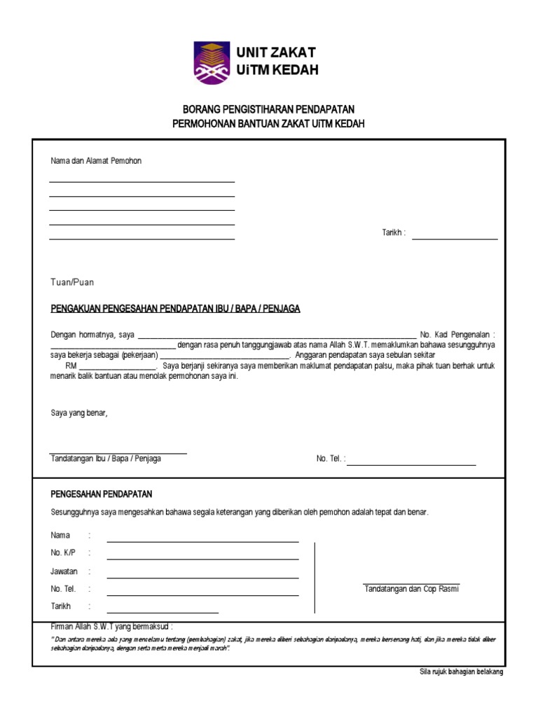 Surat Pengesahan Pendapatan Uitm Letter 7saudara Com